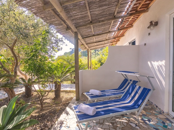 Il Giardino del Nonno è un agriturismo di charme a conduzione familiare, immerso in un giardino rigoglioso di piante, fiori, alberi da frutto e ulivi, con vista mozzafiato sulla Baia dei Maronti, la Torre di Sant’Angelo e Capri.